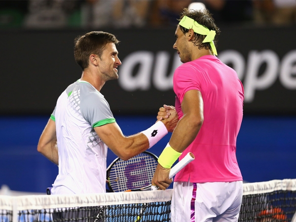 Rafael Nadal (R) shakes hands with Tim Smyczek following their second-round match at Australian Open 2015, in which Nadal prevailed after more than four hours on court. [Getty Images]